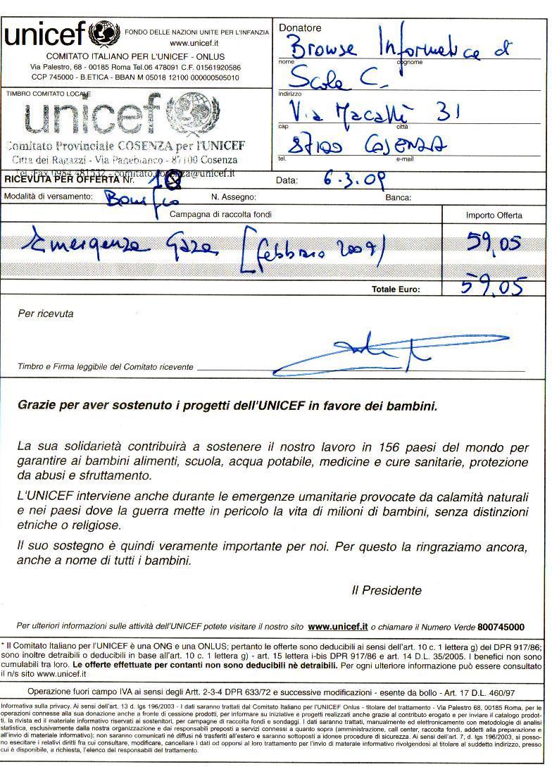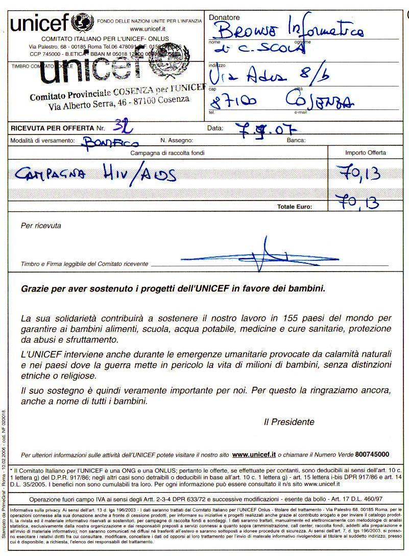 Sosteniamo l'unicef con il 5% del ricavato dei nostri software e con il 2% sul resto del fatturato.